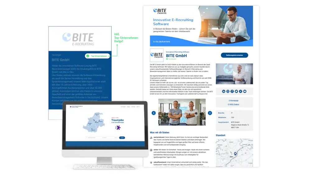 Our regional job portals give all interested companies and organizations the chance to showcase themselves to applicants with a free employer profile. For even more impact, we also offer Premium Employer Profiles.